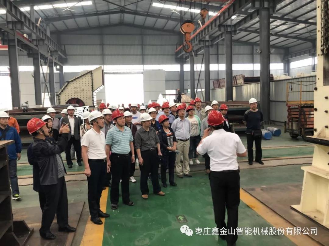 與會領(lǐng)導(dǎo)來到棗莊鑫金山智能機(jī)械股份有限公司參觀調(diào)研,在生產(chǎn)車間了解生產(chǎn)流程,公司戰(zhàn)略發(fā)展部長孫法虎陪同調(diào)研,市場部長耿慶金陪同介紹。