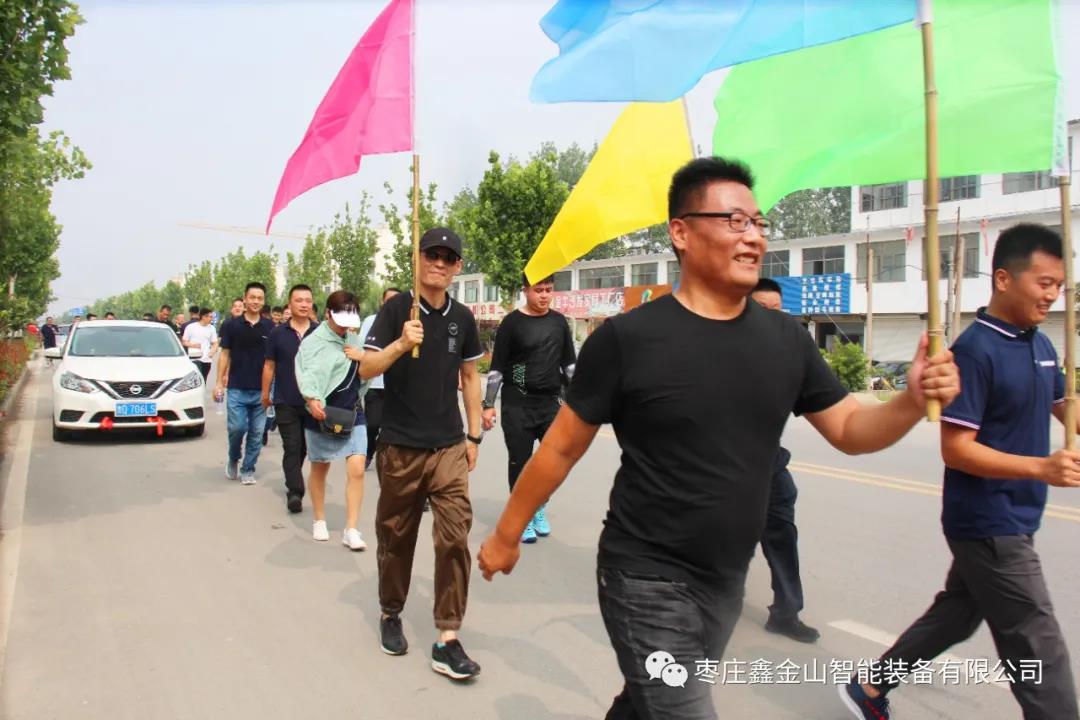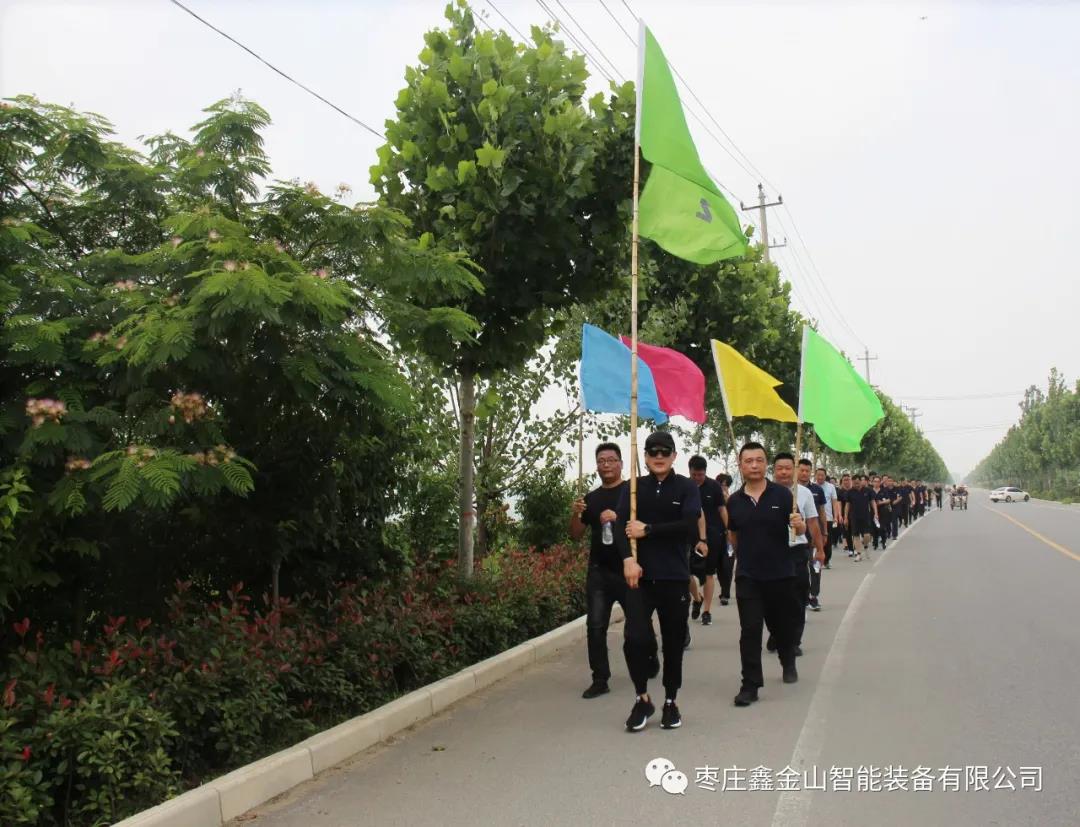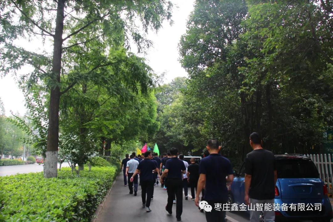 清晨8點(diǎn),伴著微風(fēng),在旗手的帶領(lǐng)下,所有員工排著整齊的隊(duì)伍從公司出發(fā),健步行走在綠樹叢蔭的道路上。