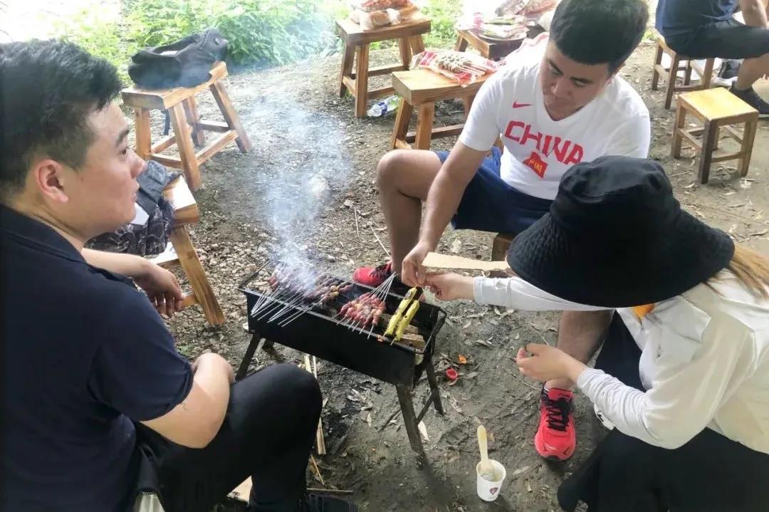 在目的地公司給大家準(zhǔn)備了豐盛的水果、燒烤等食物。抵達(dá)目的地后,在領(lǐng)隊(duì)的帶領(lǐng)下,分成四組,開啟了一場美食盛宴。