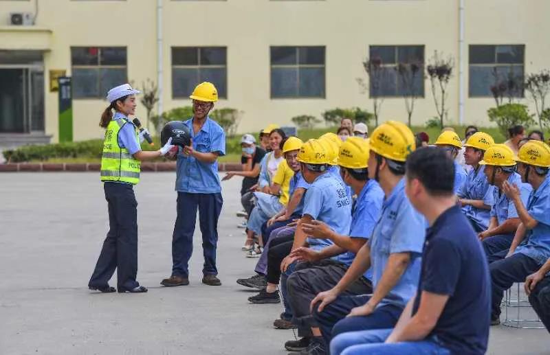 活動現(xiàn)場,民警們通過通俗易懂的語言,并結(jié)合近期發(fā)生的案例,自編自演了快板、小品、歌曲、情景劇等寓教于樂的節(jié)目,向園區(qū)工友們宣傳防范電信詐騙、傳授交通安全以及防火防盜等方面的知識,贏得了在場工友們的陣陣掌聲。