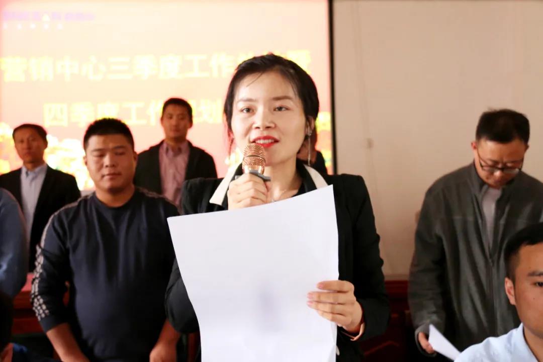 營銷總監(jiān)胡振霖通過精準的數(shù)據(jù)分析對第三季度的工作做了全面的總結,表彰了工作突出的同事,也深刻分析了存在的問題。并對四季度的工作目標做了詳細說明和部署,也對營銷戰(zhàn)士們的工作提出了更高的要求。同時用自己的親身經歷激勵大家再鼓干勁,為了目標而努力。zui后,胡總要求大家團結一心,深挖潛力,勢必完成今年的銷售指標。