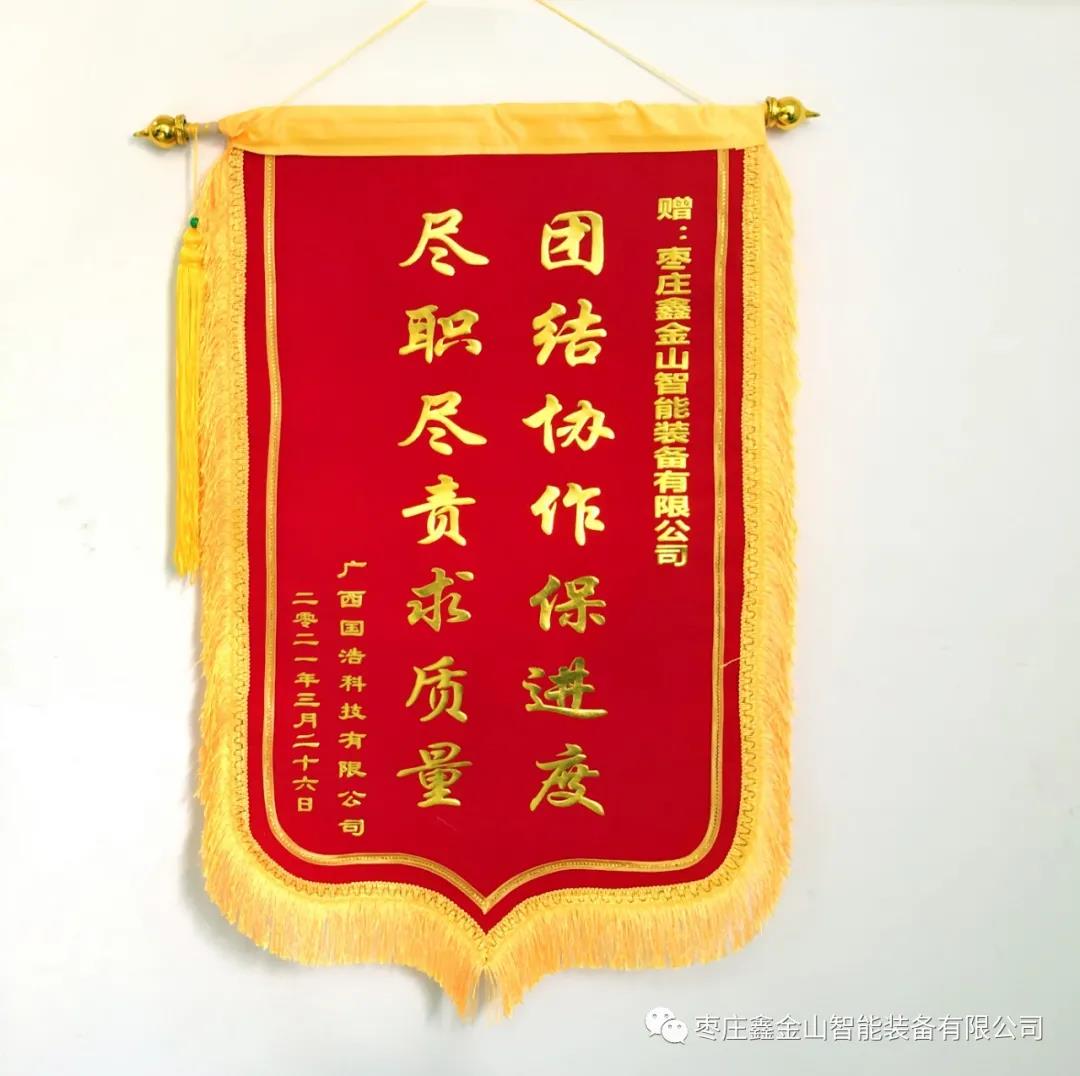 導(dǎo)讀:“金杯銀杯,不如客戶的好口碑”。2021年3月份期間,棗莊鑫金山智能裝備有限公司憑借優(yōu)質(zhì)高效的服務(wù)連續(xù)收到來自多家客戶贈(zèng)送的錦旗與表?yè)P(yáng)信,充分彰顯了客戶對(duì)鑫金山公司的高度認(rèn)可與信任。