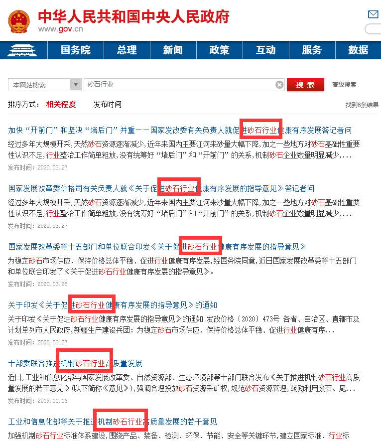 據(jù)中國(guó)砂石協(xié)會(huì)和中國(guó)砂石骨料網(wǎng)了解,中國(guó)政府網(wǎng)已經(jīng)多次關(guān)注、報(bào)道砂石行業(yè),并對(duì)砂石行業(yè)重要文件進(jìn)行權(quán)威發(fā)布。